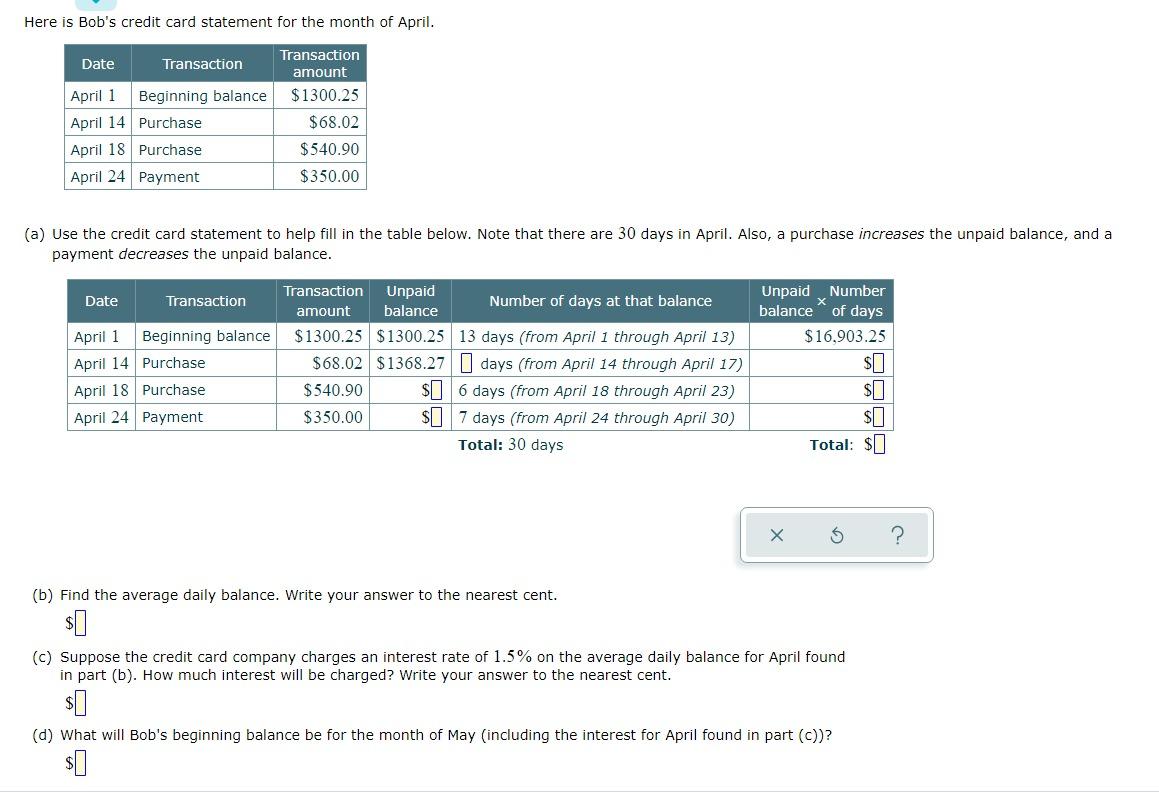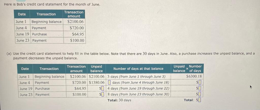 Solved Here Is Bob S Credit Card Statement For The Month Of Chegg Com